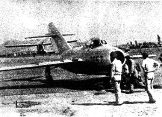 MIG-15 lands at Kimpo in 1953; only one that deserted North Korea.